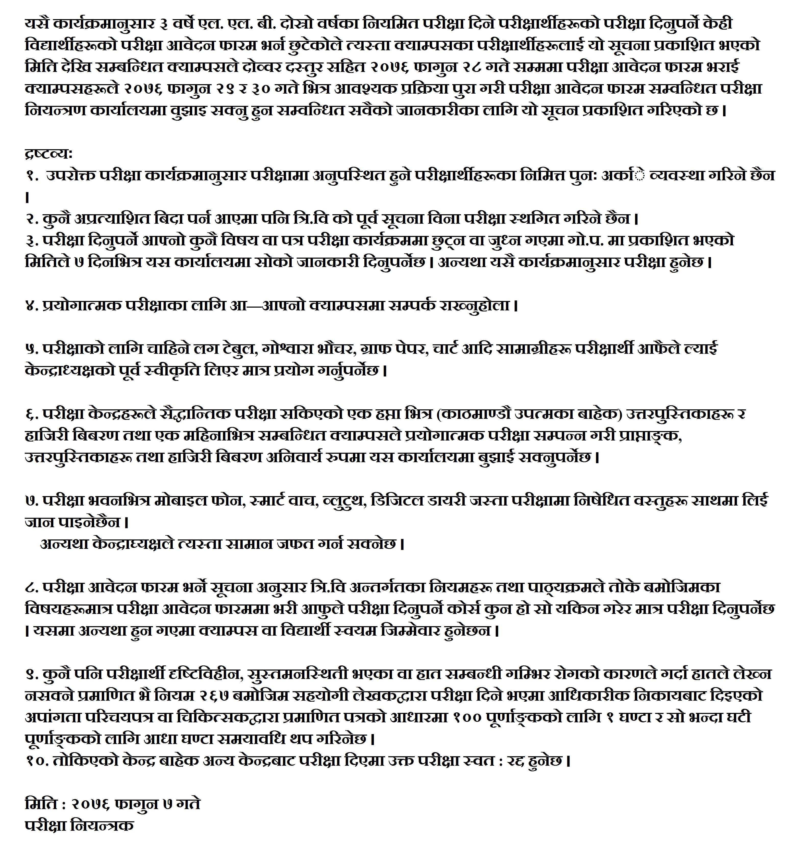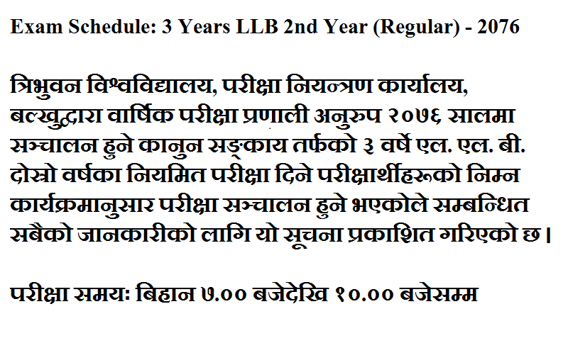 TU Exam Routine of LLB Second Year.
