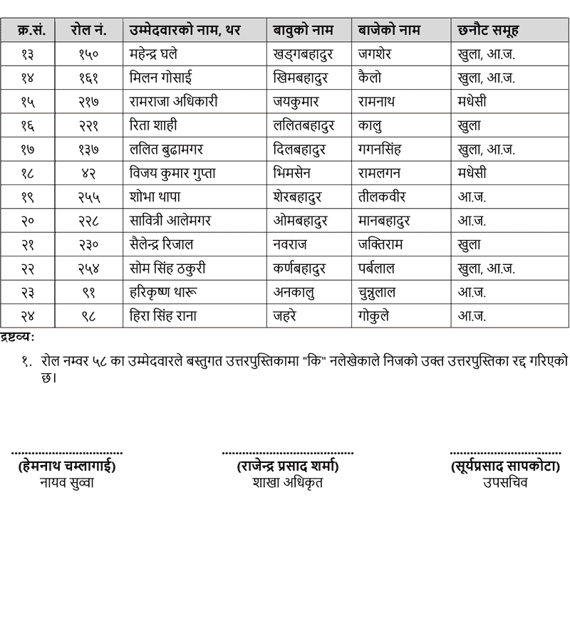 Nepal Bank Limited (NBL) Gold tester written exam results of Karnali Pradesh (Pradesh No 6) by lok sewa aayog (PSC).