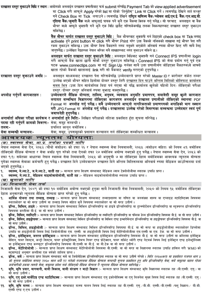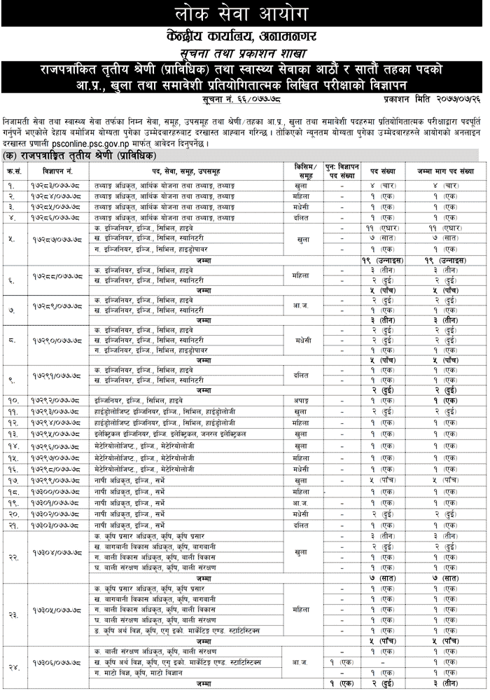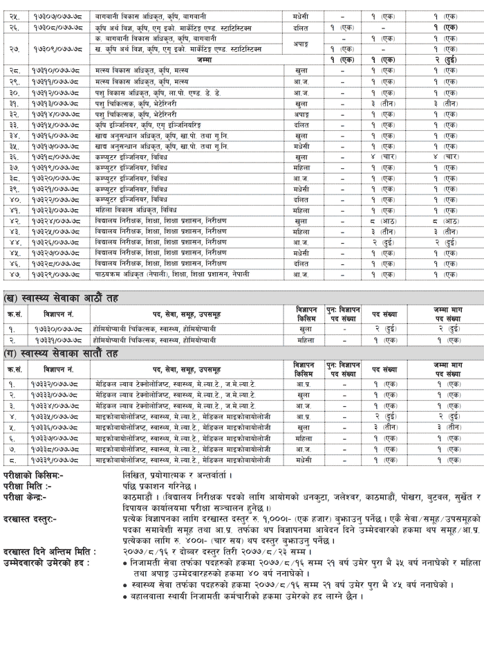 Lok Sewa aayog published new job vacancy notices for section officer ( Adhikrit) Level of Technical posts. Various Technical and health service section officer (Adhikrit) Level job vacancy notice by Public Service Commission Central Office, Anamnagar.