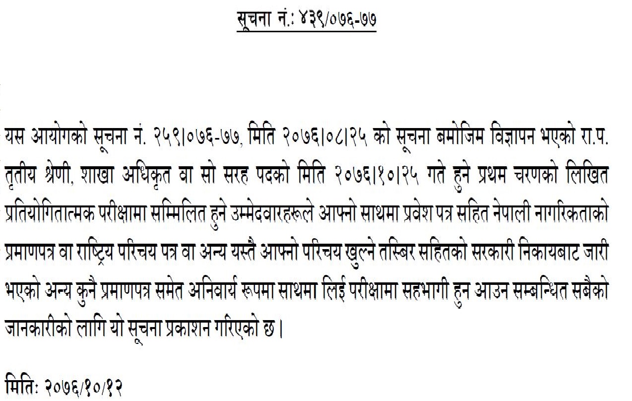 Lok Sewa Aayog published important notice regarding exam of officer . All important notice for candidates are below.