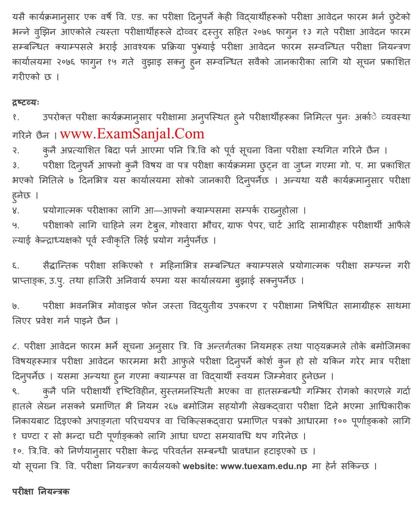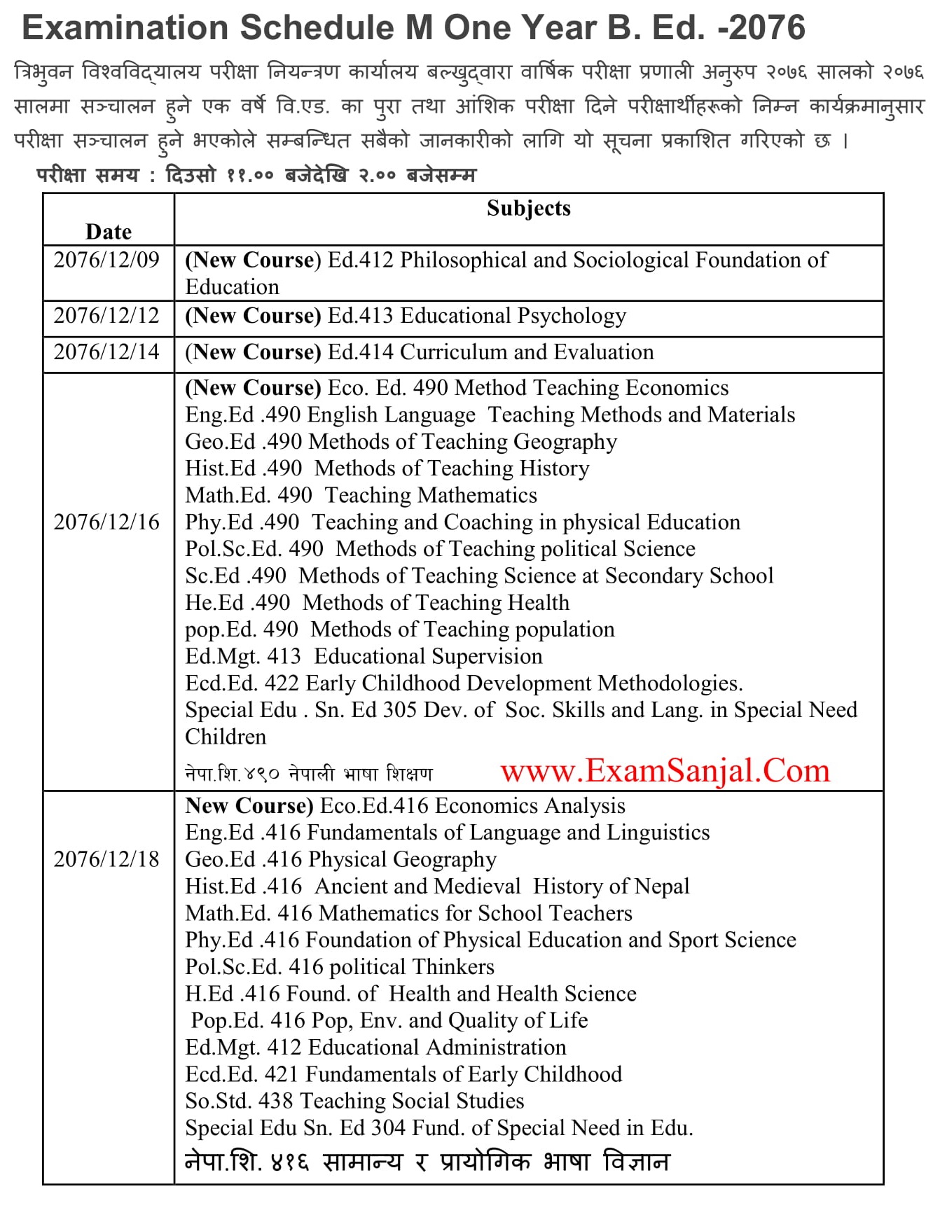 Examination Schedule M One Year B. Ed. -2076. Tu published Exam Routine schedule of One Year B.Ed. All the Routine are given below.