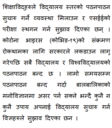 The educationists have suggested to make arrangements for resumption of school level education and to postpone the SEE examination. SEE Exam Update Notice 2076