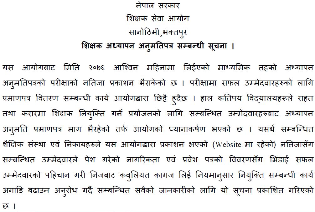 Teaching License result view : https://www.examsanjal.com/category/teacher-service-notice/