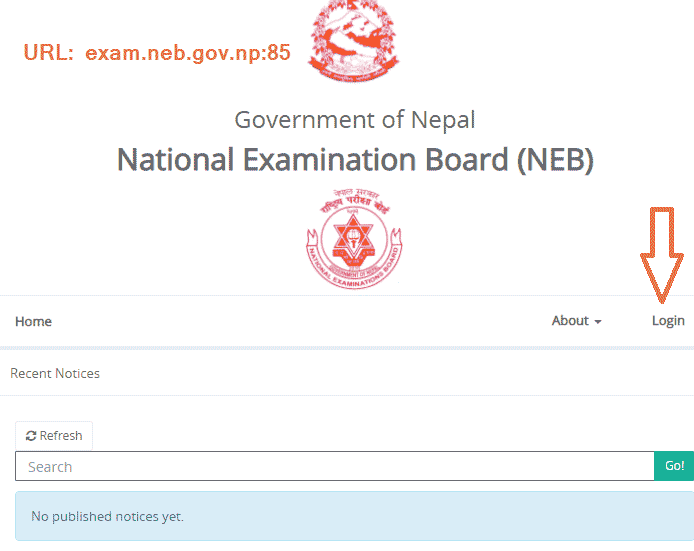 1. Go to your web browser (Chrome / Opera / Firefox) and type exam.neb.gov.np:85.