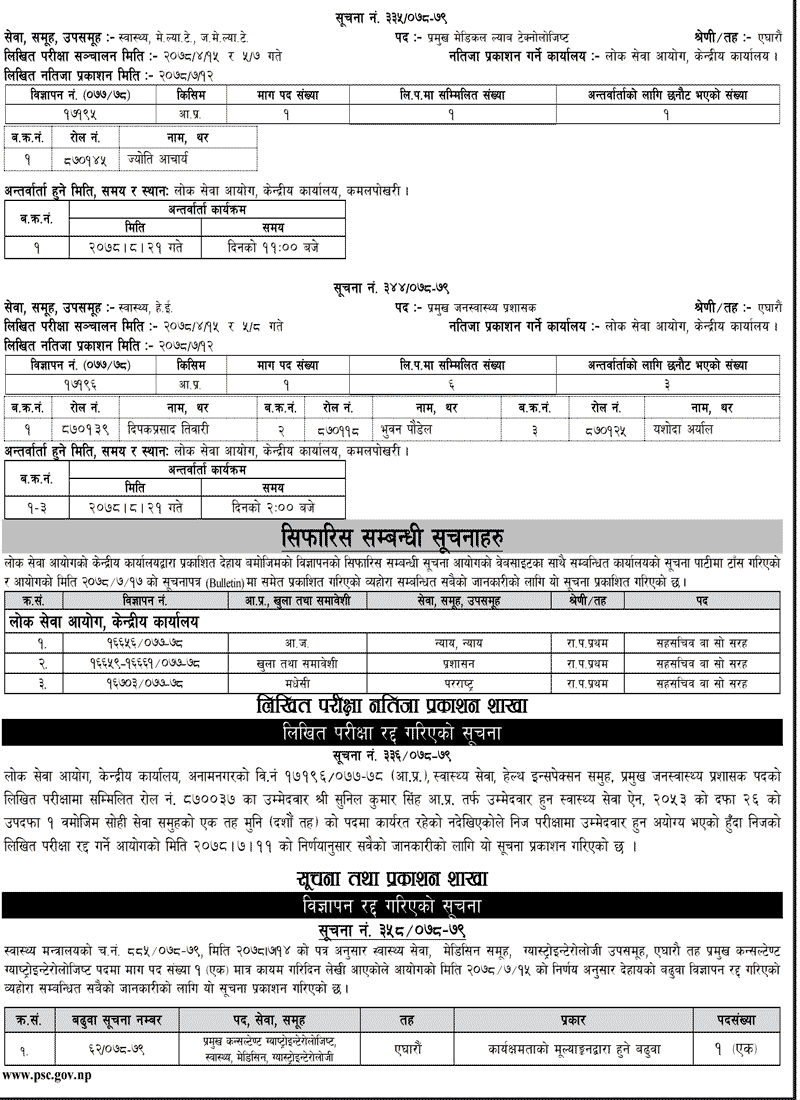 Lok Sewa Aayog New Vacancy notice with Vacancy posts number also revised by Lok Sewa Aayog. Various written examination results details also given below.