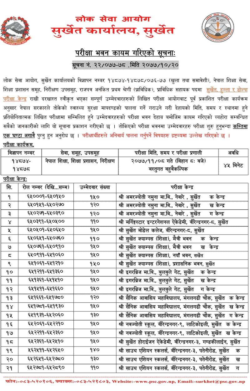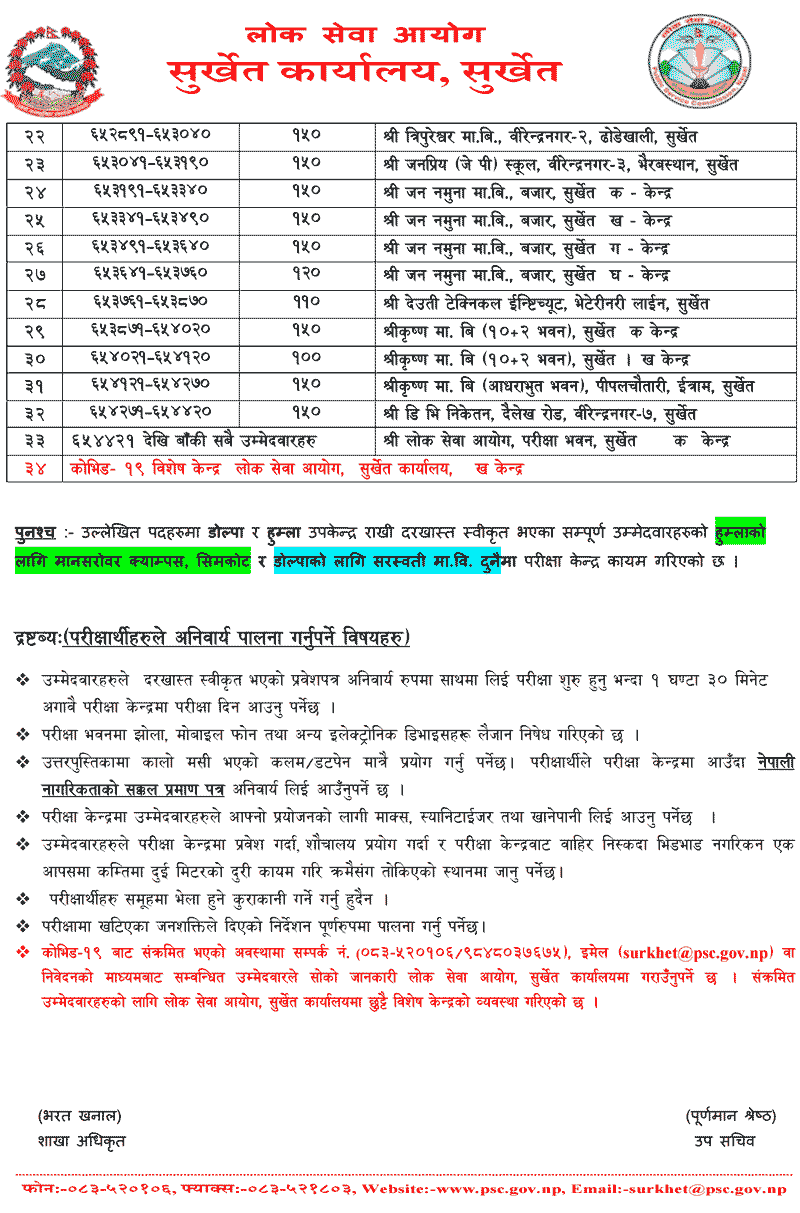 =>View Surkhet, Dhankuta Exam center Prabidhik Sahayak Pra Sa