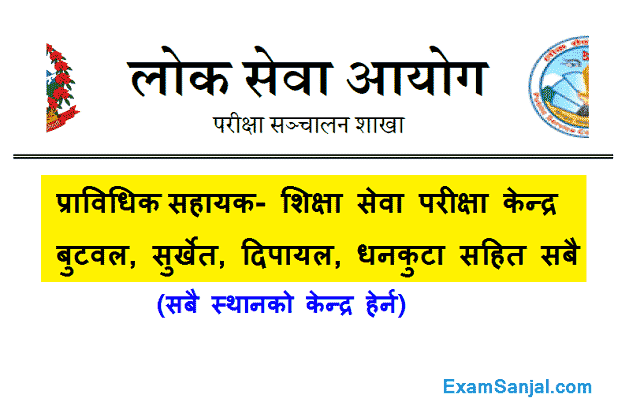 Pra Sa Exam Center Prabidhik Sahayak Exam Center Shiksha sewa, Prabidhik Sahayak & Prabidhik Na Su exam Center recently published by Lok Sewa aayog. Prabidhik Sahayk Pra Sa Exam Center of Butwal, Surkhet, Dipayal, Dhankuta are given below. All the Exam Center details of Technical Na Su Pra sa Prabidhik Sahayak including Education Shiksha, Engineering, Survey, Agriculture, Meteorological, Forest botany all service are given below.