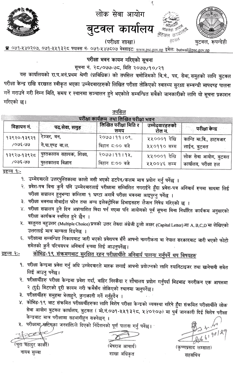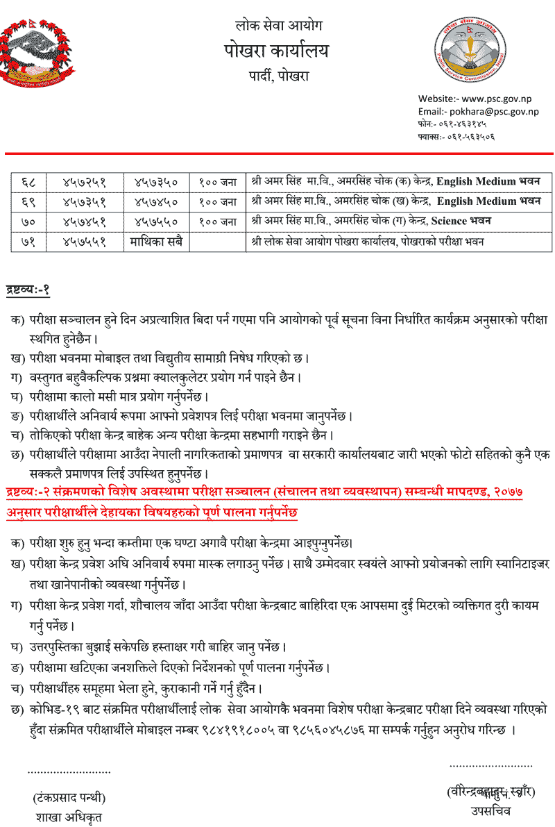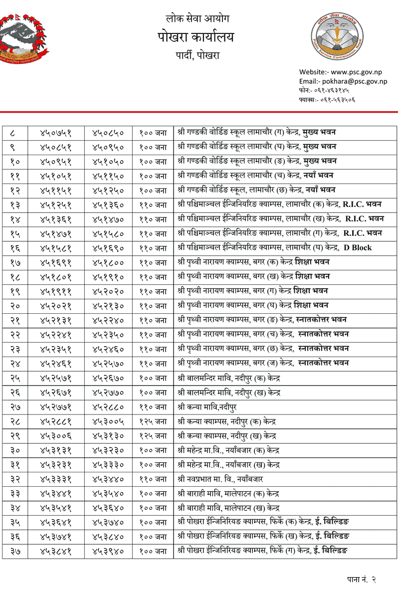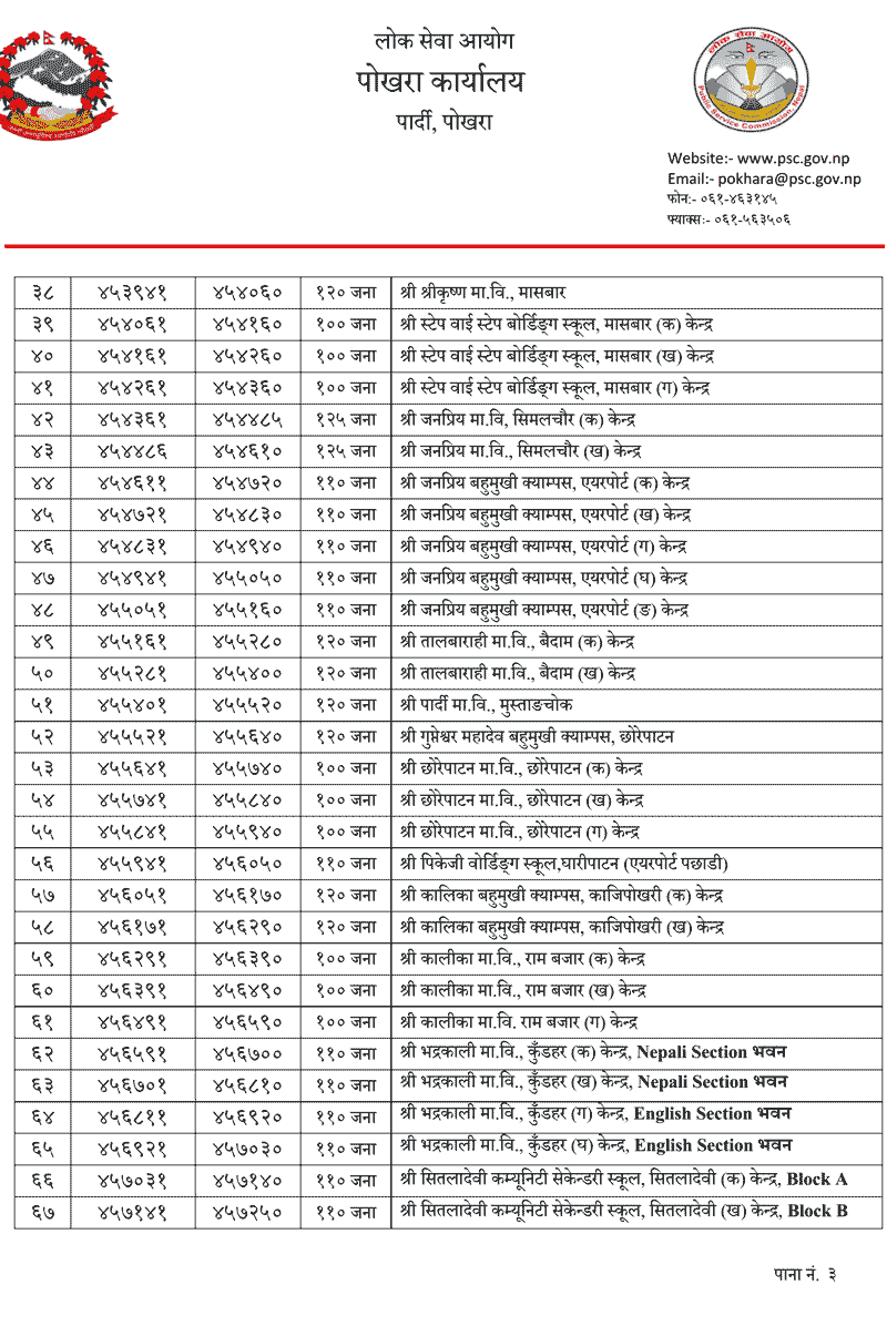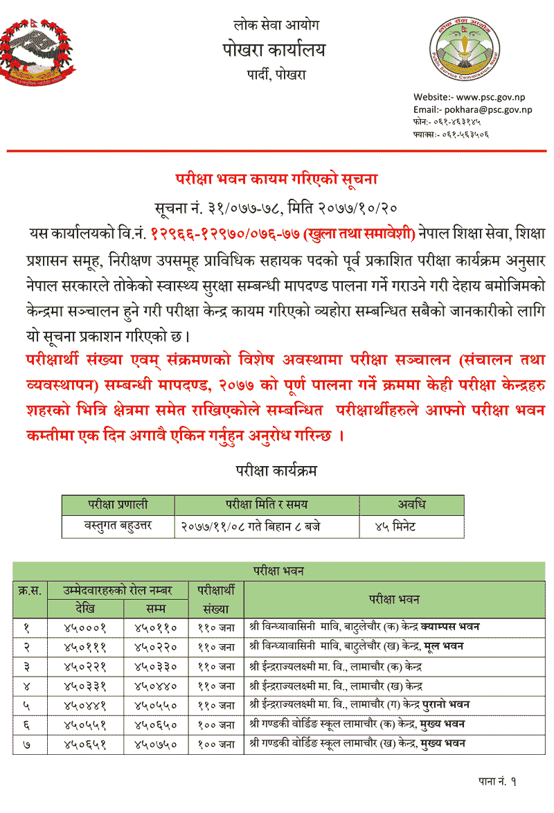 Pra Sa Exam Center Prabidhik Sahayak Exam Center Shiksha sewa, Prabidhik Sahayak & Prabidhik Na Su exam Center recently published by Lok Sewa aayog. Prabidhik Sahayk Pra Sa Exam Center of Pokhara, Butwal, Surkhet, Dipayal, Dhankuta are given below. All the Exam Center details of Technical Na Su Pra sa Prabidhik Sahayak including Education Shiksha, Engineering, Survey, Agriculture, Meteorological, Forest botany all service are given below.