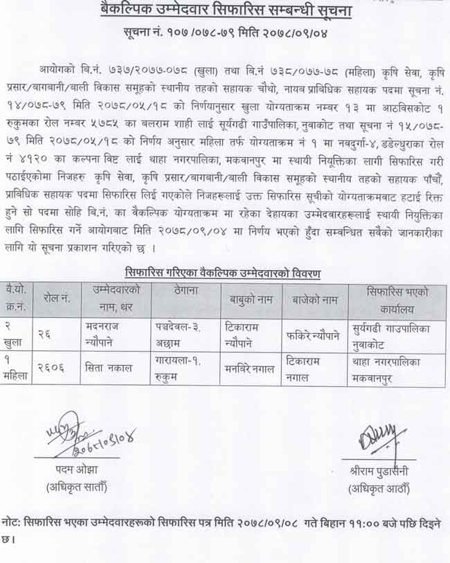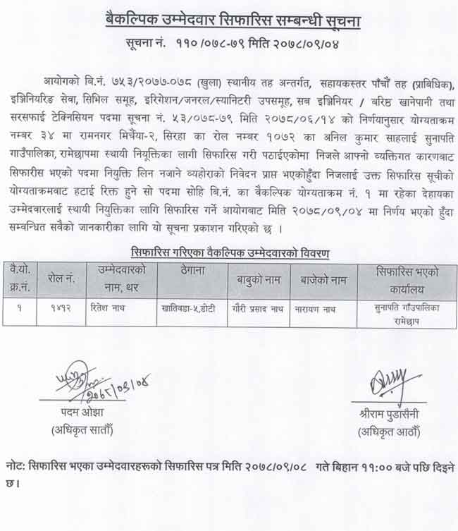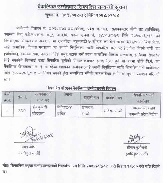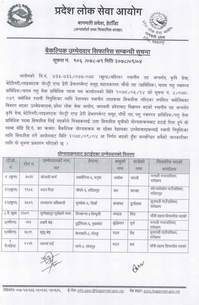 All the notices regarding Baikalpik Ummedwar Sifaris alternative candidates or waiting lists candidates appointment notice by Pradesh Lok Sewa Aayog.