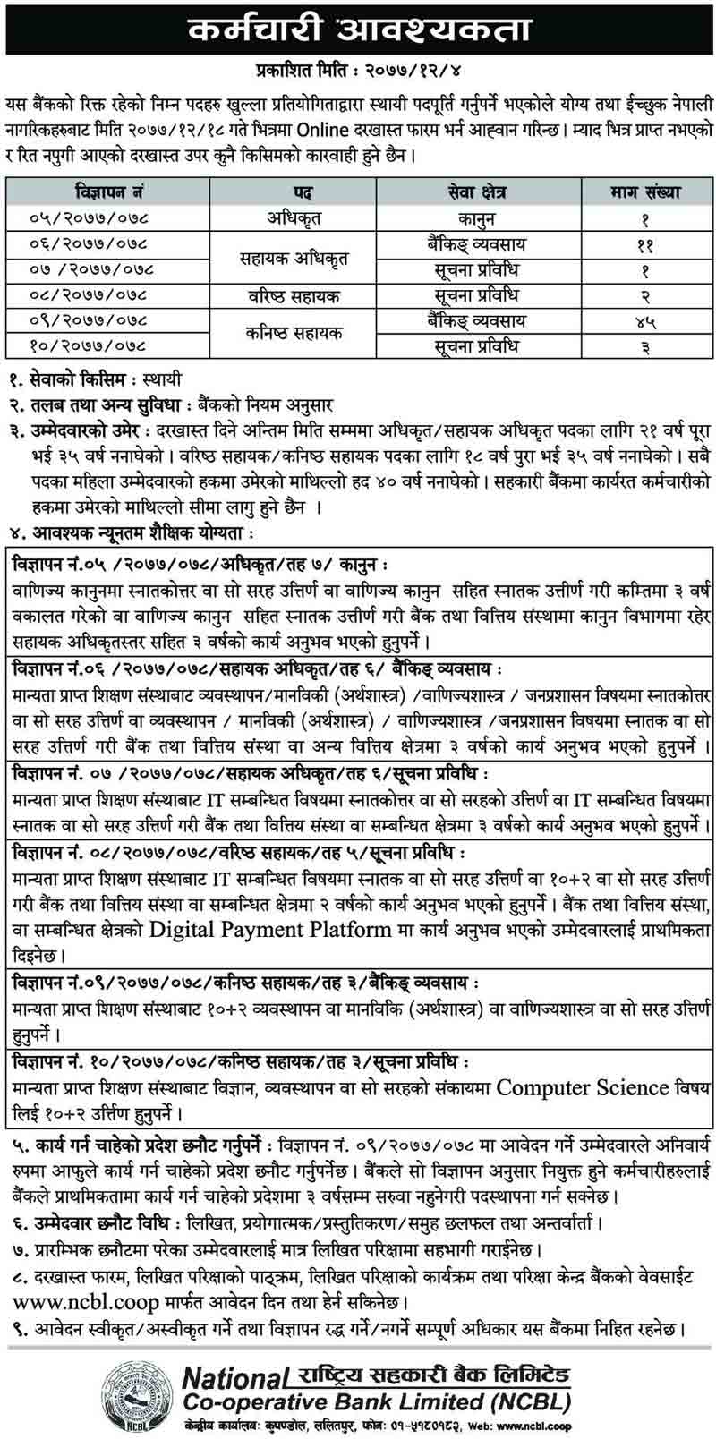 National Co-operative Bank Limited (NCBL) Central Office: Kupandol, Lalitpur, Phone: 01-5180182. web: www.nebl.com.