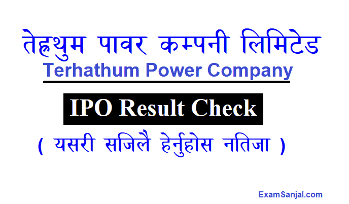 Terhathum Power IPO Result of the general public is going to be published today. Terhathum Power Company IPO Result will be Published by NIBL Ace Capital Ltd. All update & IPO Result Check Terhathum Power IPO. The initial public offering (IPO) of Terhathum Power Company is open for general Public.
