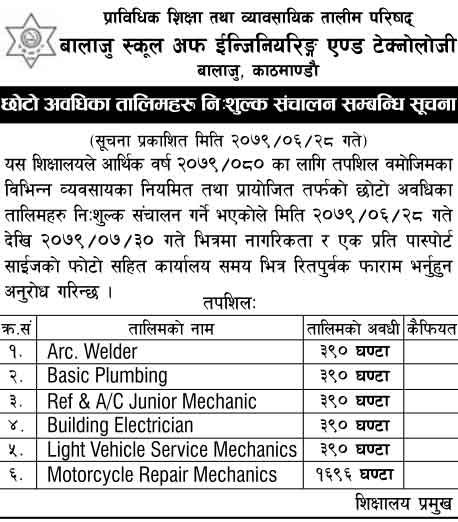 Free Skillful & technical Prabidhik Training of Plumber & House Wiring is now open. The government of Nepal & CTEVT Project published Free Nisulka Skill Sipmulak Talim Training for the general public. Auto mechanics, Motorcycle repair, Electronics, Beautician Hair Design, Sewing cutting, Arc. Welder, Basic Plumbing, Refrigerator & A/c Junior Mechanics, Building Electrician, Light Vehicle Service Mechanics Free Skill Training Application Open for All.
