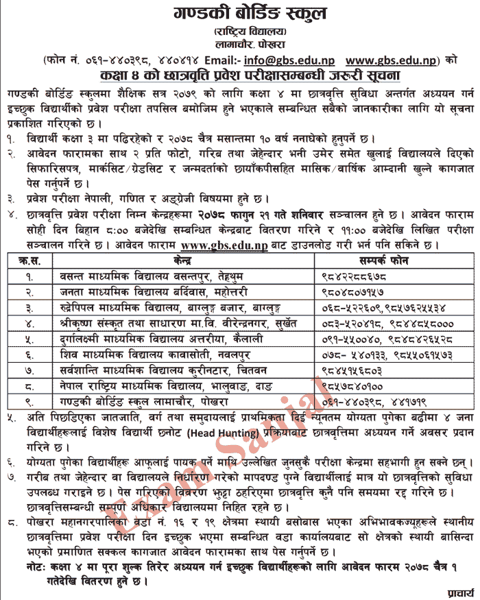 Apply Gandaki Boarding Scholarship – Gandaki Boarding School Scholarship Notice details