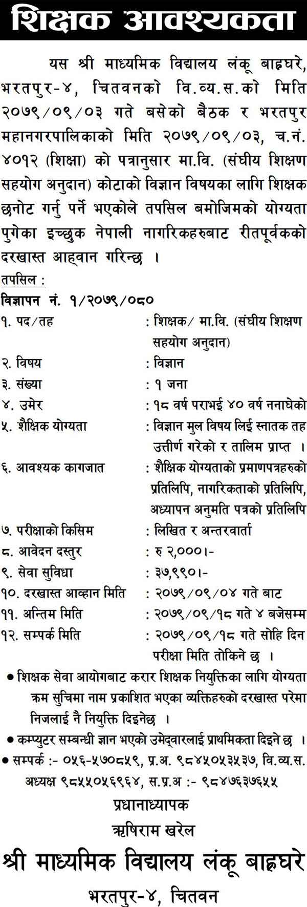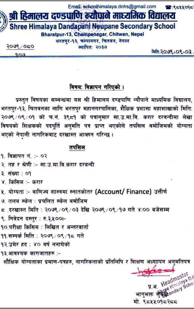 Teacher Job Vacancy in Chitwan Government Grant Anudan Teacher Job