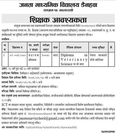 Teacher Job Vacancy in Kapilvastu Sarkari School Teacher Job