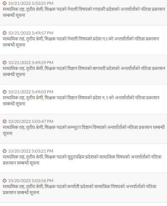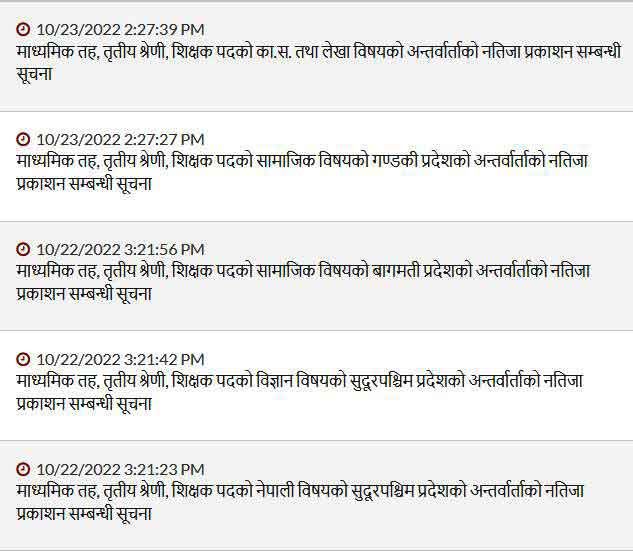 If the candidates who participated in the interview want to see their results and marks, they can go to the results of this Commission’s website www.tsc.gov.np for 7 days from the date of publication of the results.