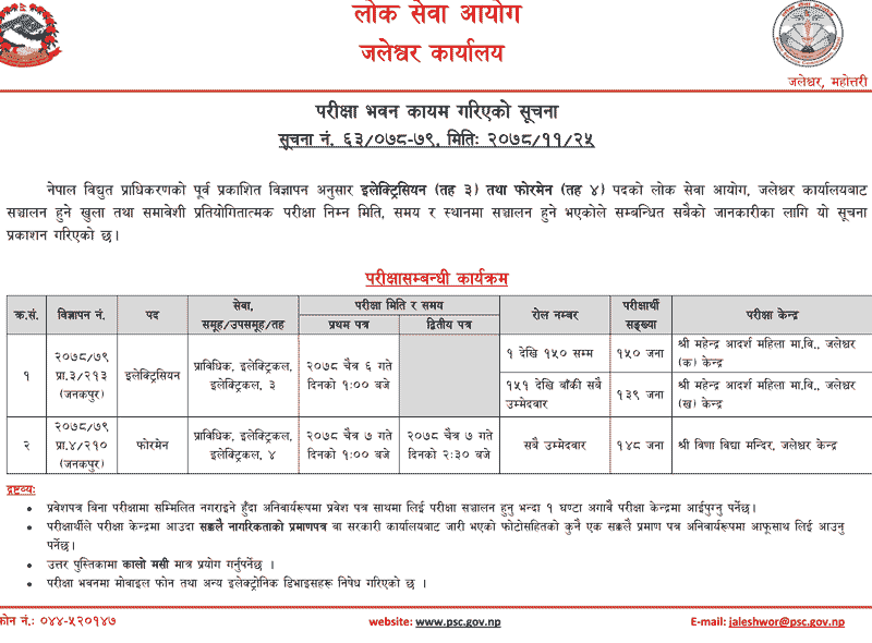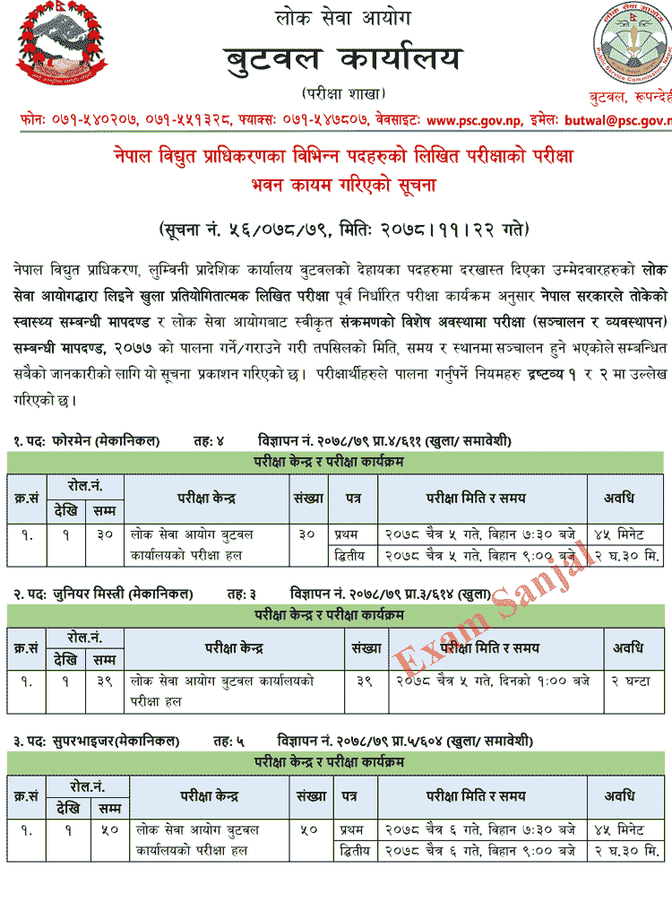 NEA Nepal Electricity Authority Bidyut Pradhikaran Exam Center Details: Butwal Dang Surkhet Kanchanpur Mahendrangar Kathmandu Dhankuta