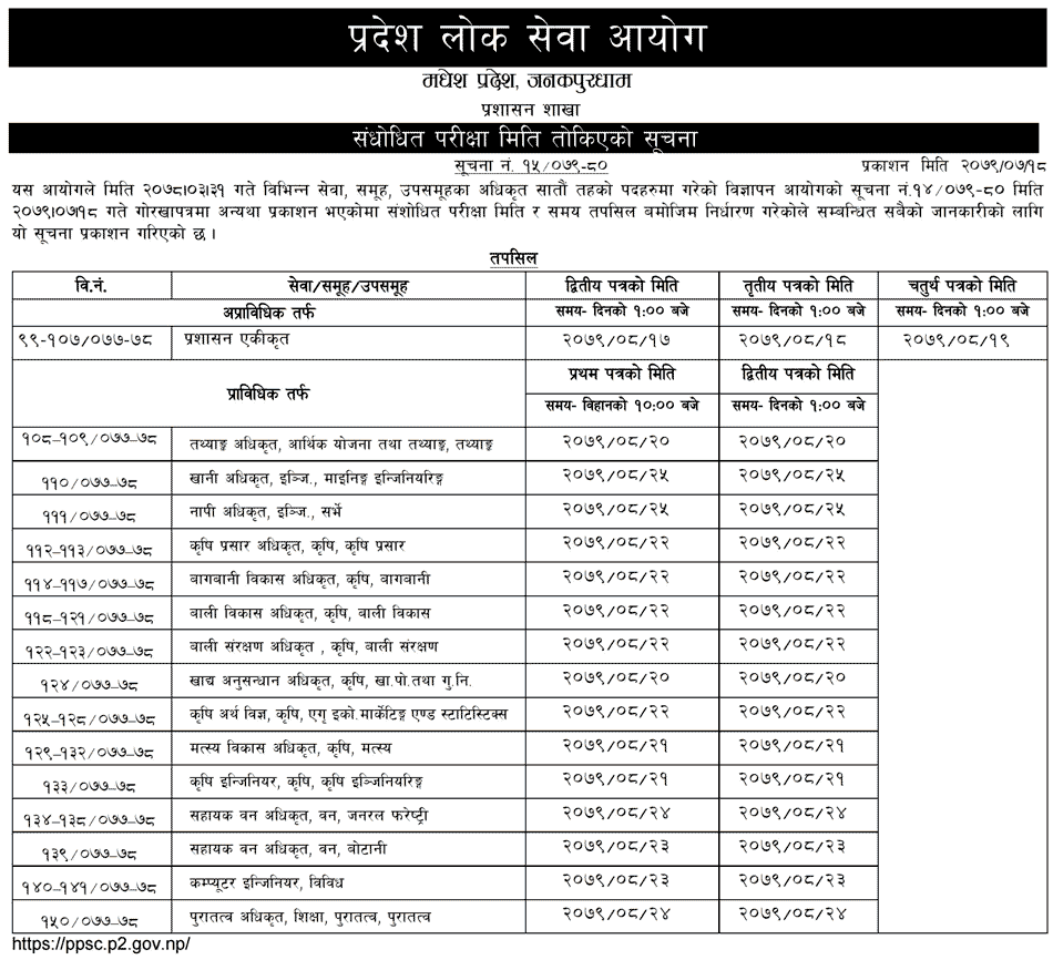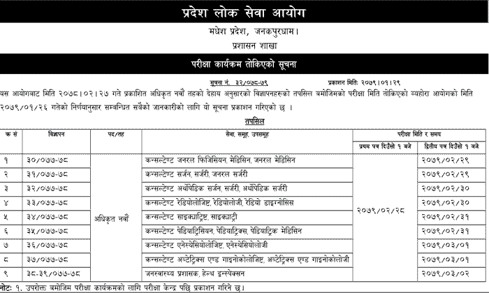 Madhesh Pradesh Lok Sewa Aayog Officer Adhikrit Examination Routine Pradesh 2