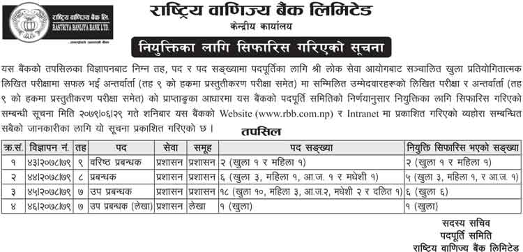 RBB Rastriya Banijya Bank Final Result appointment Notice