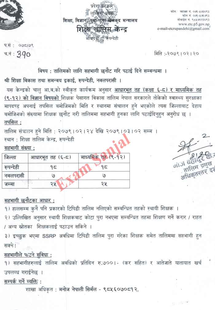 Training Venue/ Conduct By: Education Training Center, Rupandehi