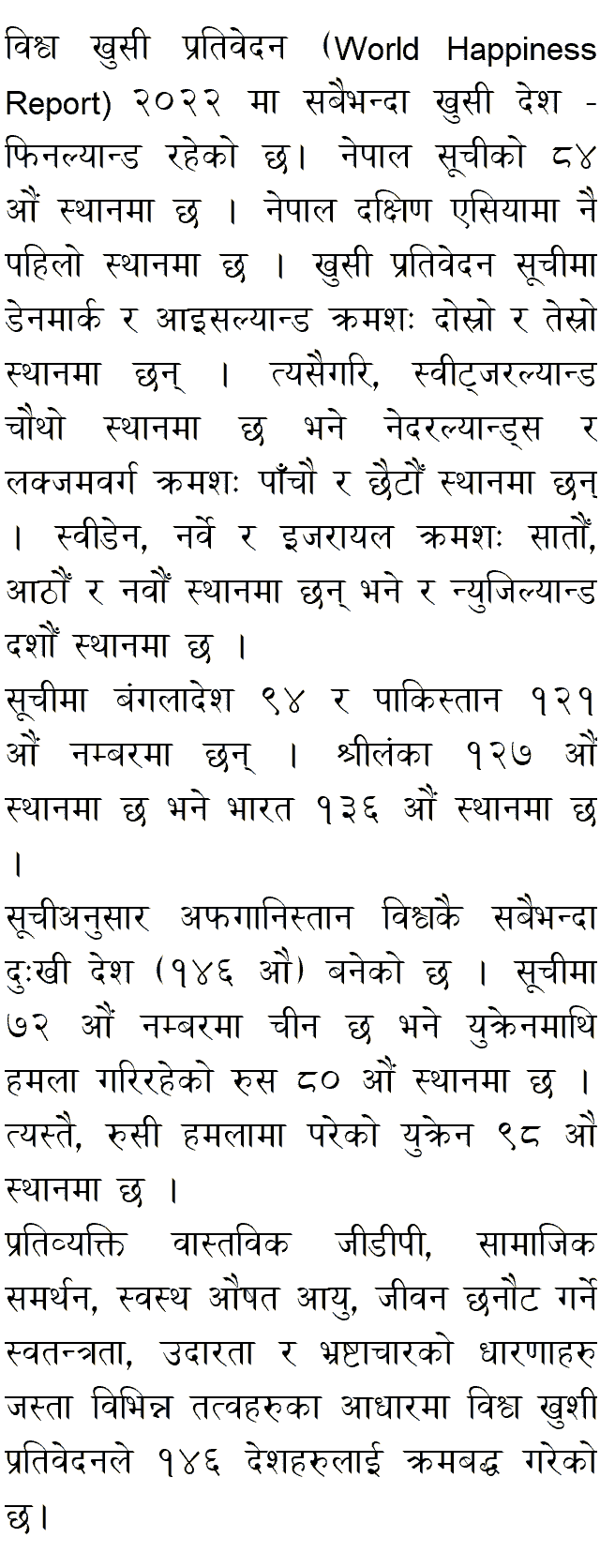 World Happiness Report 2022 Nepal Rank- Bishwo Khusi Pratibedan 2022