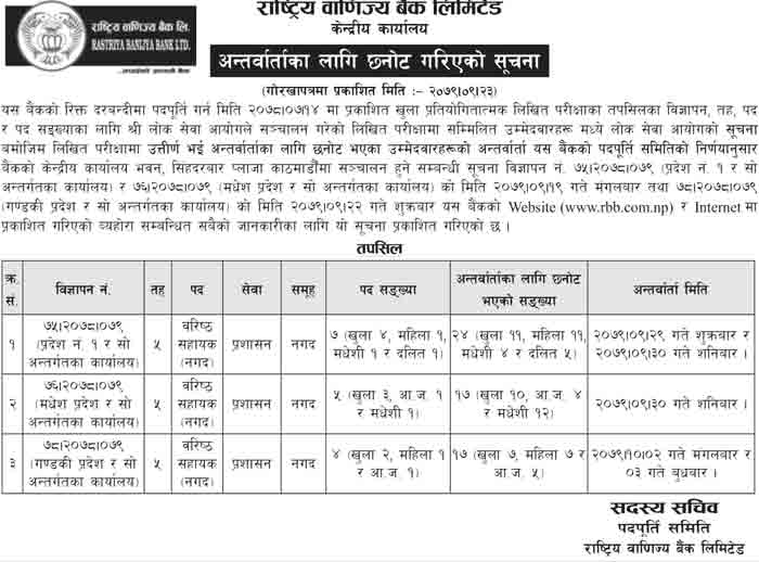 => View Previously published RBB Rastriya Banijya Bank Result INterview notice