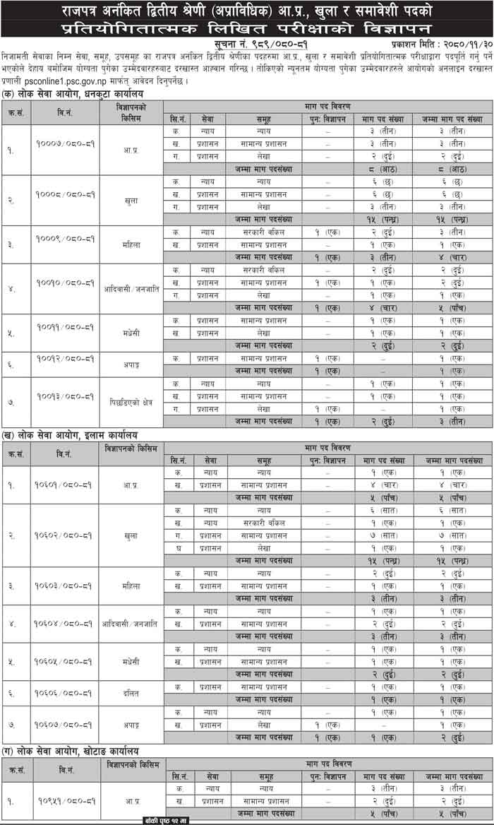 Government Job Vacancy notice by Lok sewa aayog. Advertisement of Kharidar Non-Gazette Uncategorized Second Class (Non-Official) open and inclusive posts, competitive written exam.