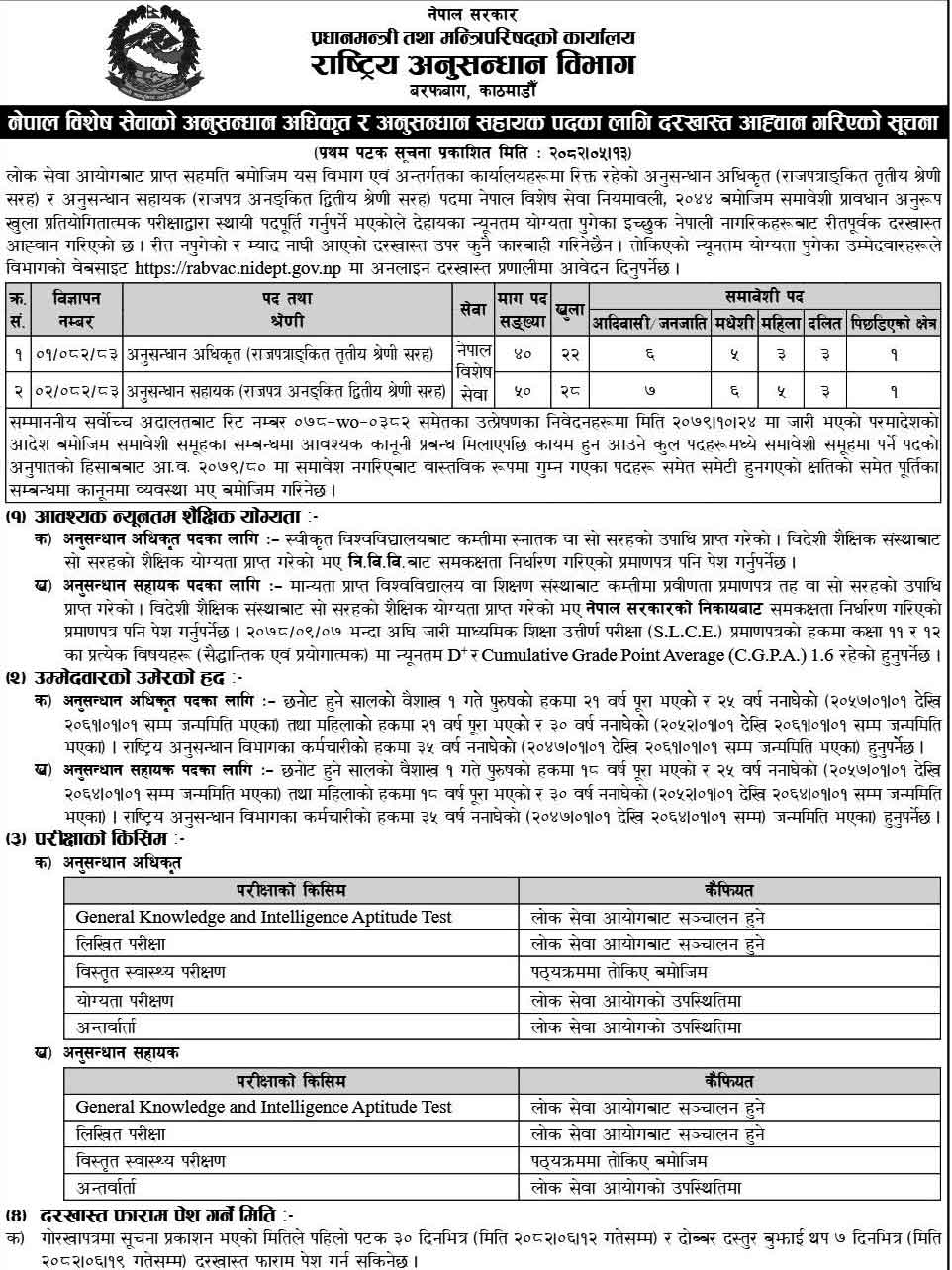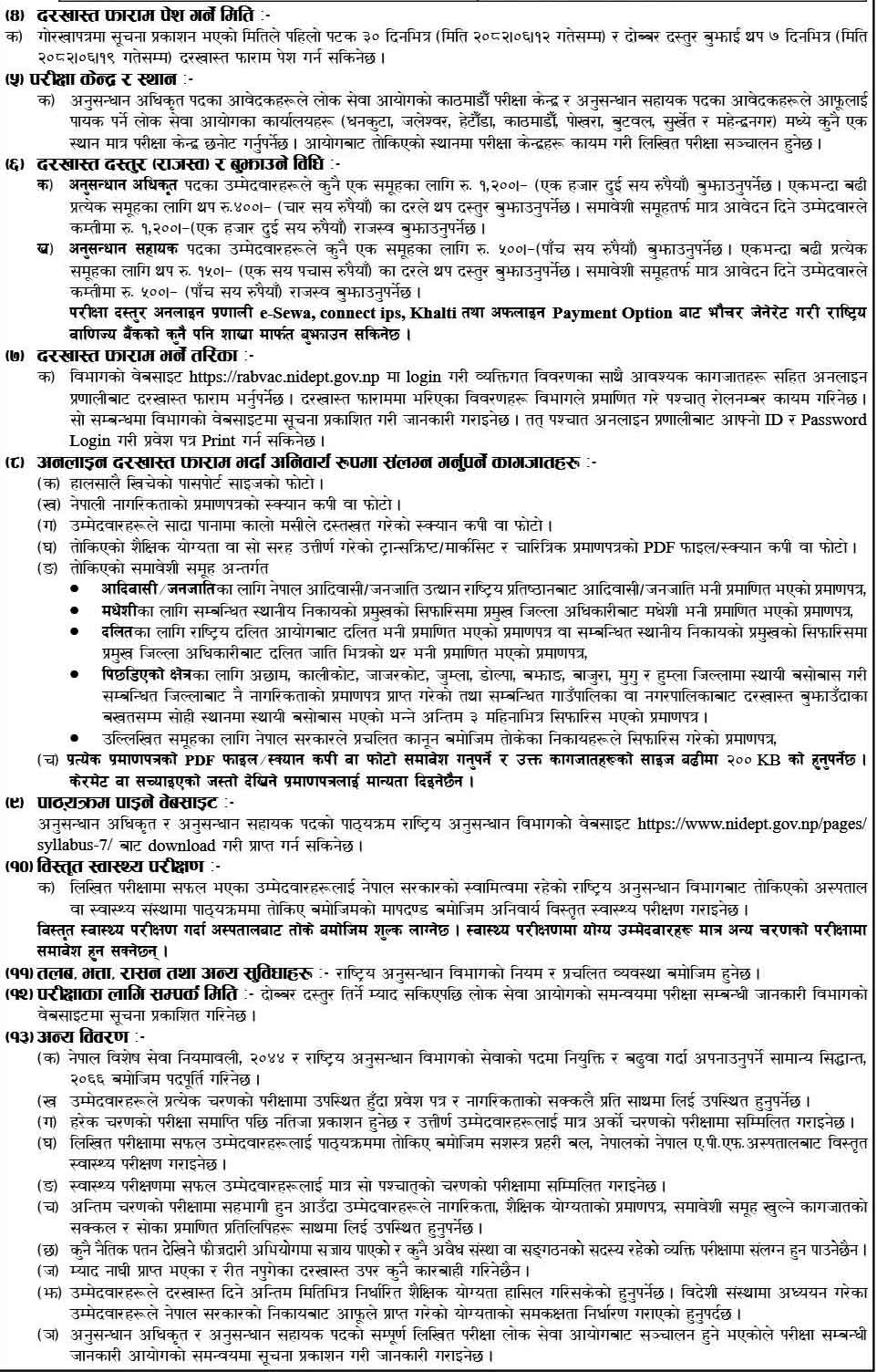 Rastriya Anusandhan Bivag Vacancy 2082 Salary Scale Nidept.gov.np career apply Online Jobs