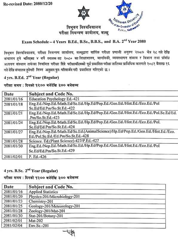 Revised TU Exam Routine Update: TU BBS BA Bed BSc Exam Routine Update Notice. View All TU Exam Routine update.
