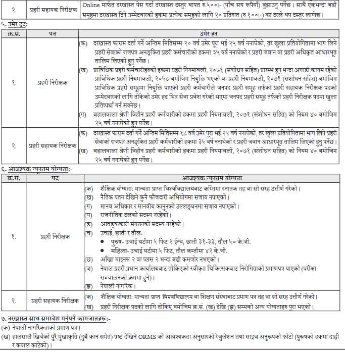 Candidates should visit the official recruitment portal or the Nepal Police notice board for detailed eligibility criteria and submission instructions.