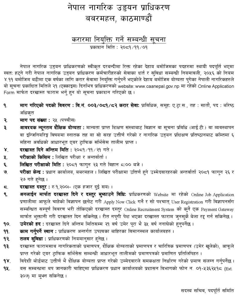 Place of Application: Online Application Form should be filled on the website of Nepal Civil Aviation Authority www.caanepal.gov.np.