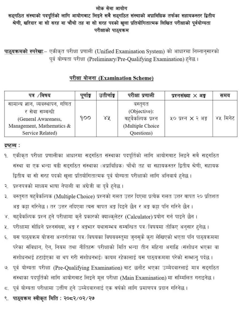 Update on 2082/02/27 (Pre Qualifying Entrance Exam Syllabus) & First Paper/Secondary Paper: 2082/07/24