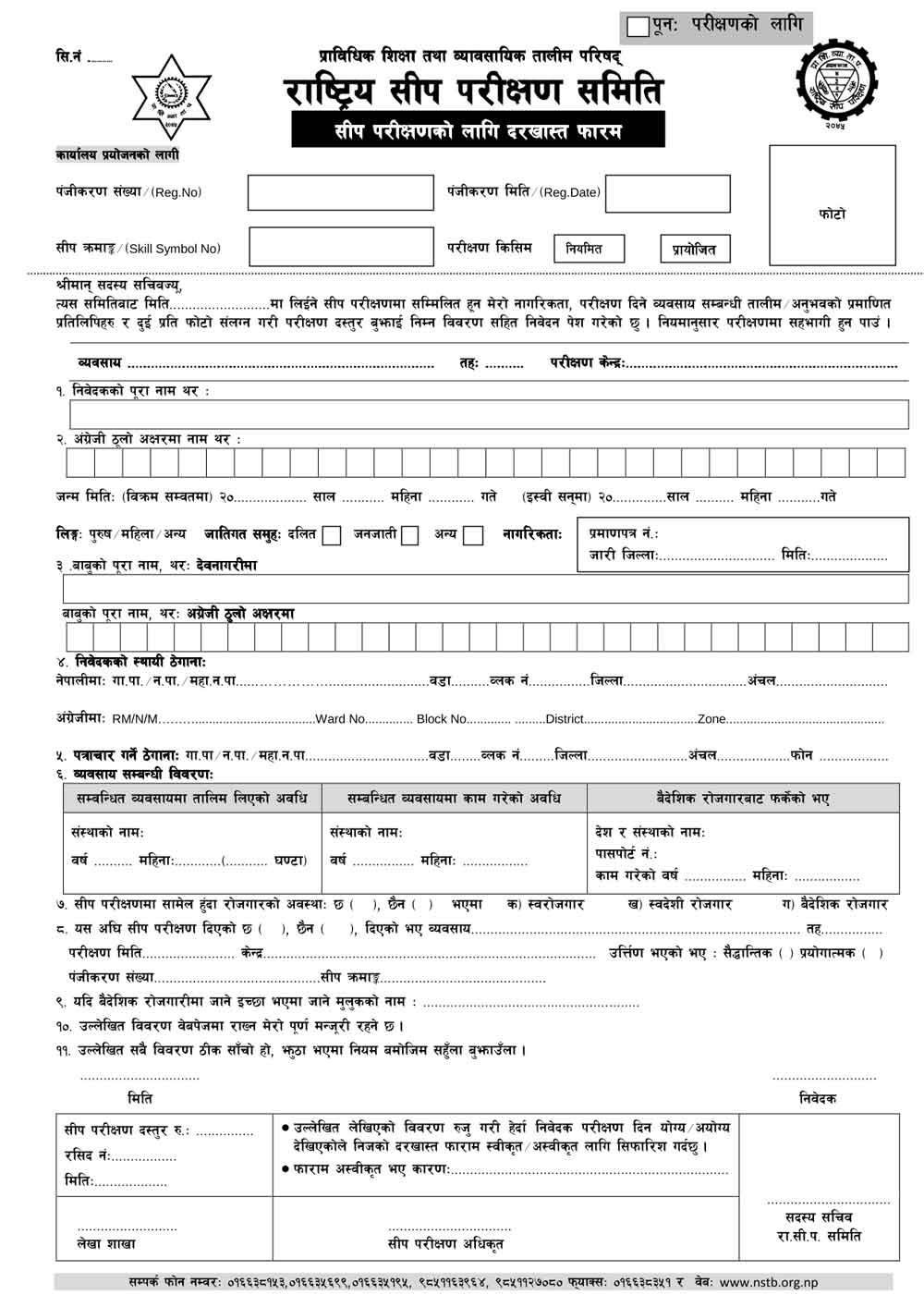Skill Test Application Form Download Print NSTB CTEVT
