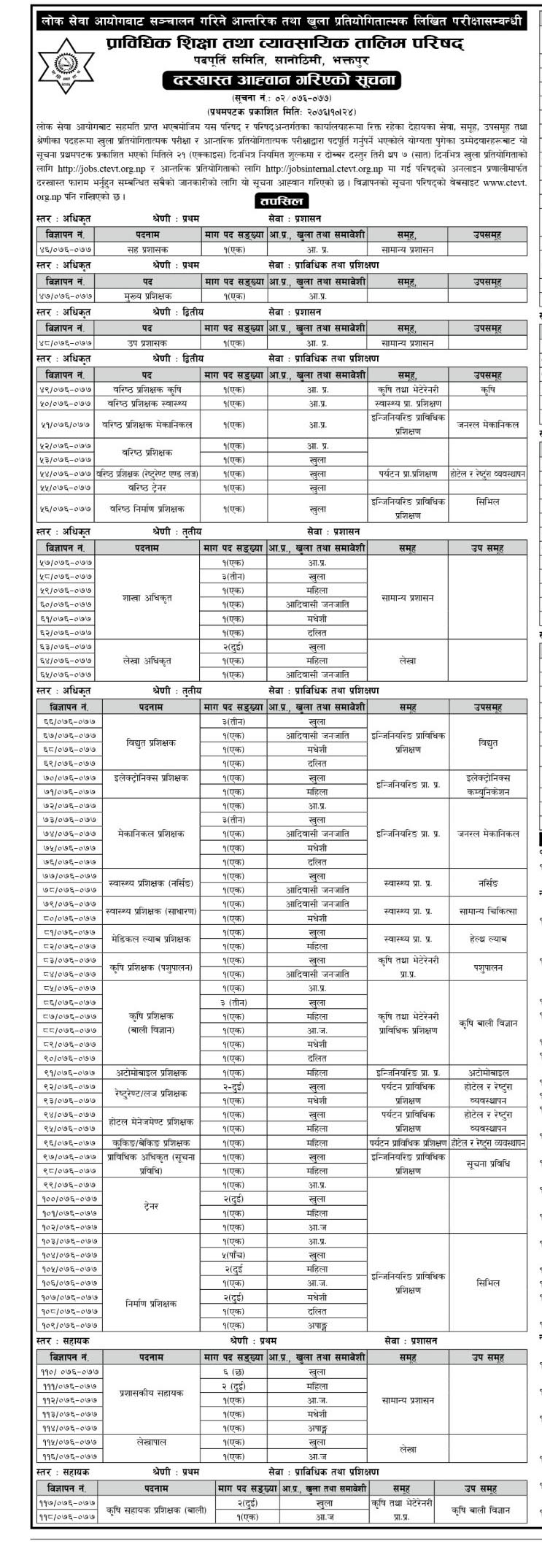 CTEVT Vacancy in Various Group and Level 2076 ( CTEVT Bigyapan 2076)