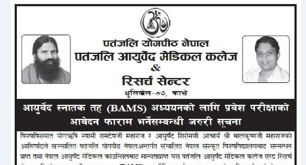 Patanjali Ayurveda Medical College published notice regarding admission in BAMS Bachelor in…