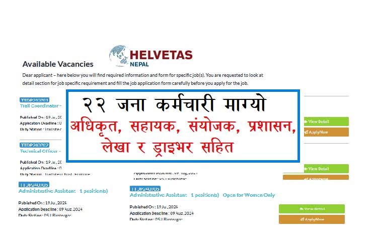 Helvetas Nepal Project published the job vacancy notice for various posts and…