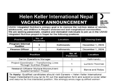 Helen Keller International Nepal published the job vacancy notice for various posts…