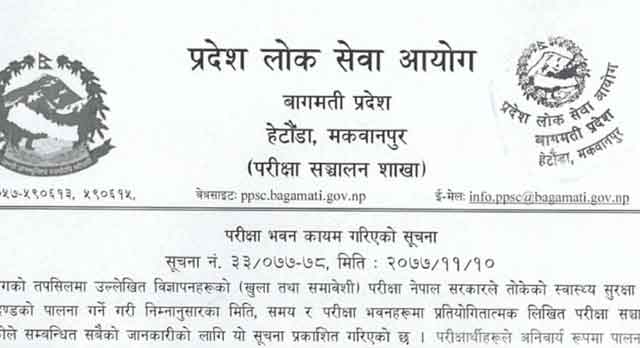 Province Public Service Commission ( Bagmati Pradesh Lok Sewa) published exam center…