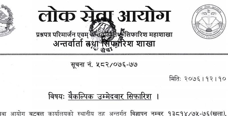 Lok Sewa Aayog Baikalpik Candidates sifaris notice. Alternative candidates appointment notice by…