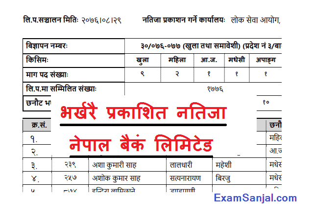 Gold Tester Kanistha Sahayak Results Nepal Bank Ltd by PSC