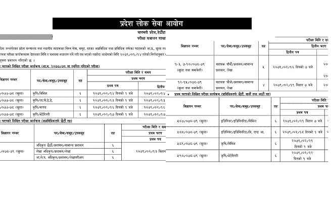 Pradesh Lok Sewa Aayog Written Exam Routine Published