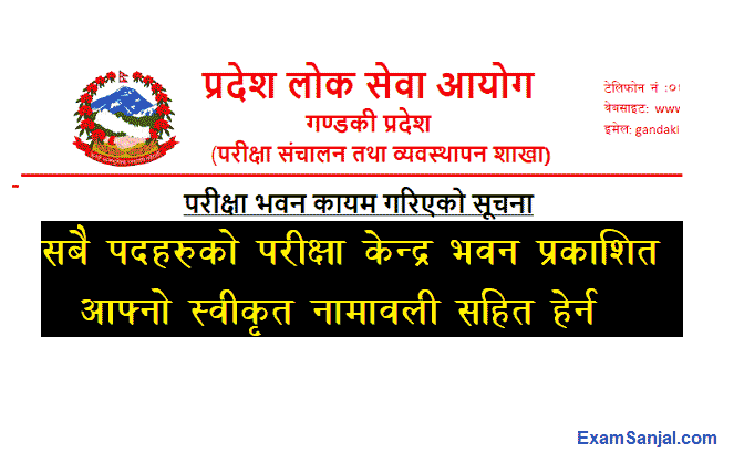Gandaki Pradesh Lok Sewa Exam Center details Namelist Gandaki Province