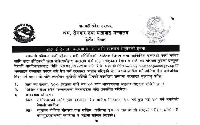 Data Entry Karta Job Vacancy Apply Bagmati Pradesh Data Entry Syllabus