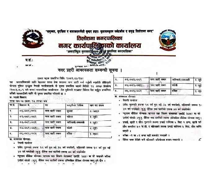 Nagar Prahari Police City Police Job Vacancy Tilottama Nagarpalika with Syllabus